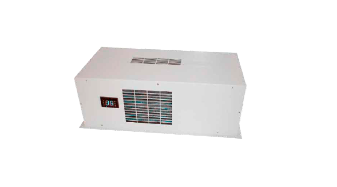 Aire acondicionado de techo para gabinete con control digital, monitoreo RS485 y alarmas integradas, ideal para mantener temperatura estable en equipos eléctricos y de telecomunicaciones.